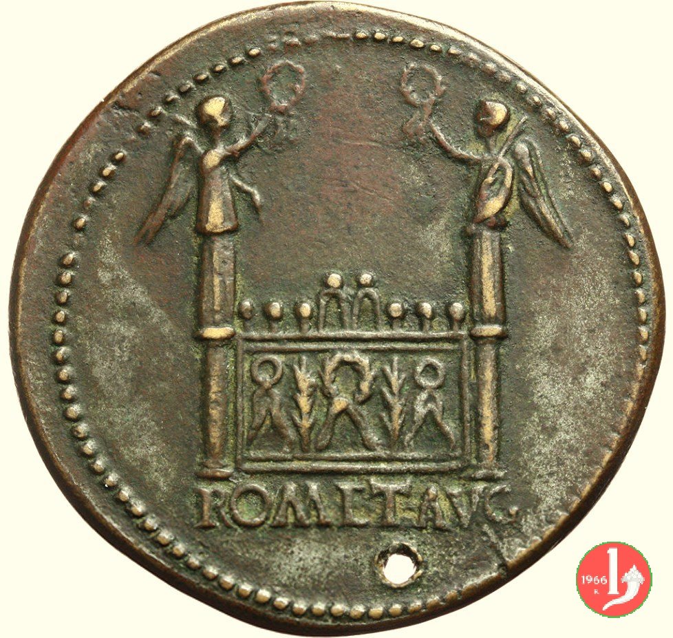 Tiberio (14-37 dc) -L5 Dritto: TI CAESAR AVGVSTI E IMPERATOR V testa a sx con barba sotto: ROME • T • AVG | |
