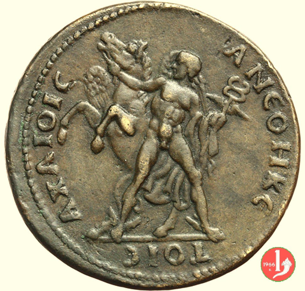 Antinoo - Mercurio -L51 Dritto: OCTIAIOC MAPYCAAOCO CECYCTOY ANTINOOY • Busto Drappeggiato di Antinoo dX Mercurio in piedi, la testa a sinistra, doma Pegaso | |