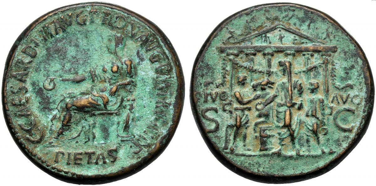 Agrippina Dritto: • AGRIPPINA • _ • TIBERII • VXOR • busto drappeggiato a dx | |