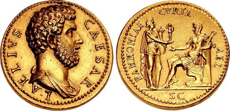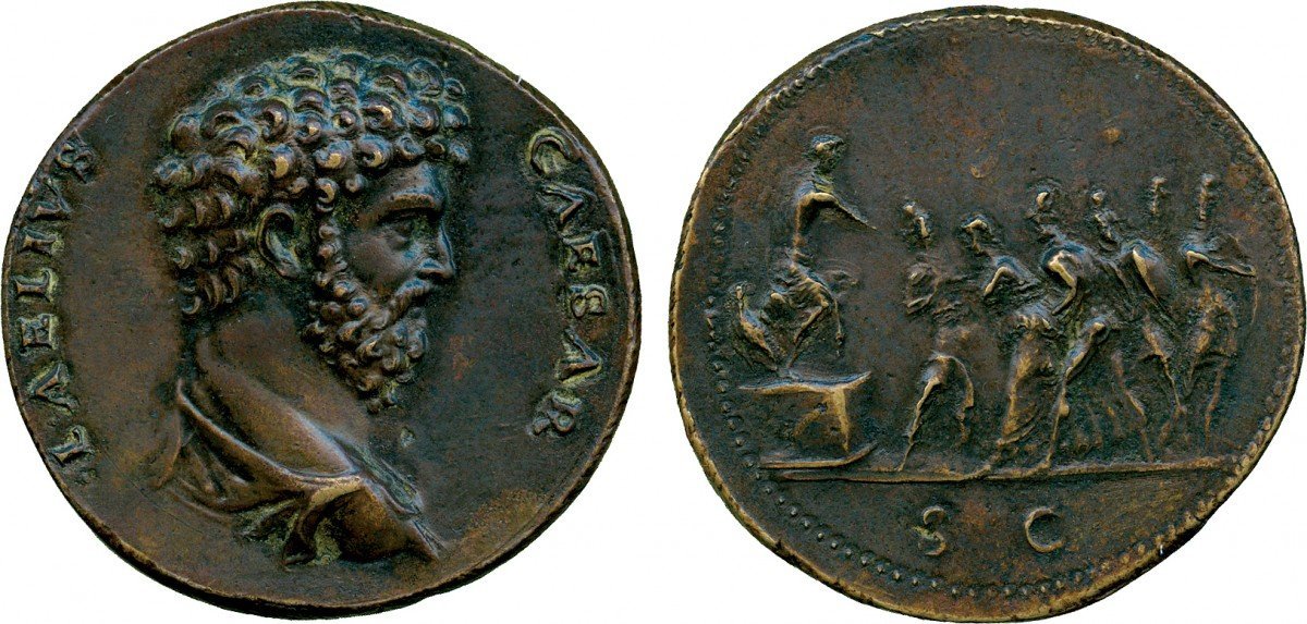 Elio Cesare (136-138 dC) Dritto: L AELIVS _ CAESAR busto paludato a dx in esergo: S C | |