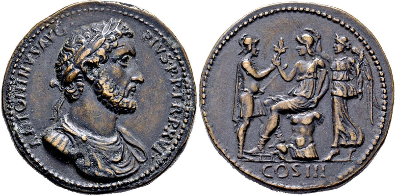 Adriano (117-138 dc) - Galea -L50 Dritto: IMP CAESAR TRAIAN HADRIANVS AVG busto corazzato e paludato a dx in esergo: COS III NEP | |
