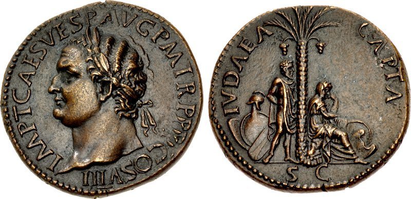 Tito (79-81 dc) - Iudaea Capta -L37 Dritto: IMP • T • CAES • VESP • AVG • P • M • TR • P • P • P • COS • VIII busto laureato a sx due figure preso palma in esergo: SC | |