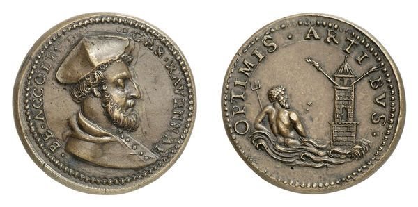 Cardinal Benedetto Accolti -L77 Obverse: _ • BE • ACCOLTVS _ • • CAR • RAVENNAE busto a dx con berretto e mozzetta Nettuno disteso in mare di fronte a faro | |