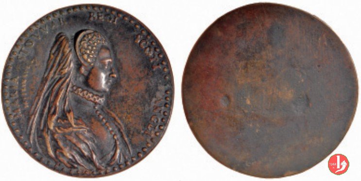 Maria Stuarda - Regina di Scozia Dritto: MARIA STOVVAR REGI SCOTI ANGLI busto a dx con berretto velato e abito con abbottonatura anteriore dietro al busto: IA • PIMAVE • donna drappeggiata china verso sx, con orologio | |