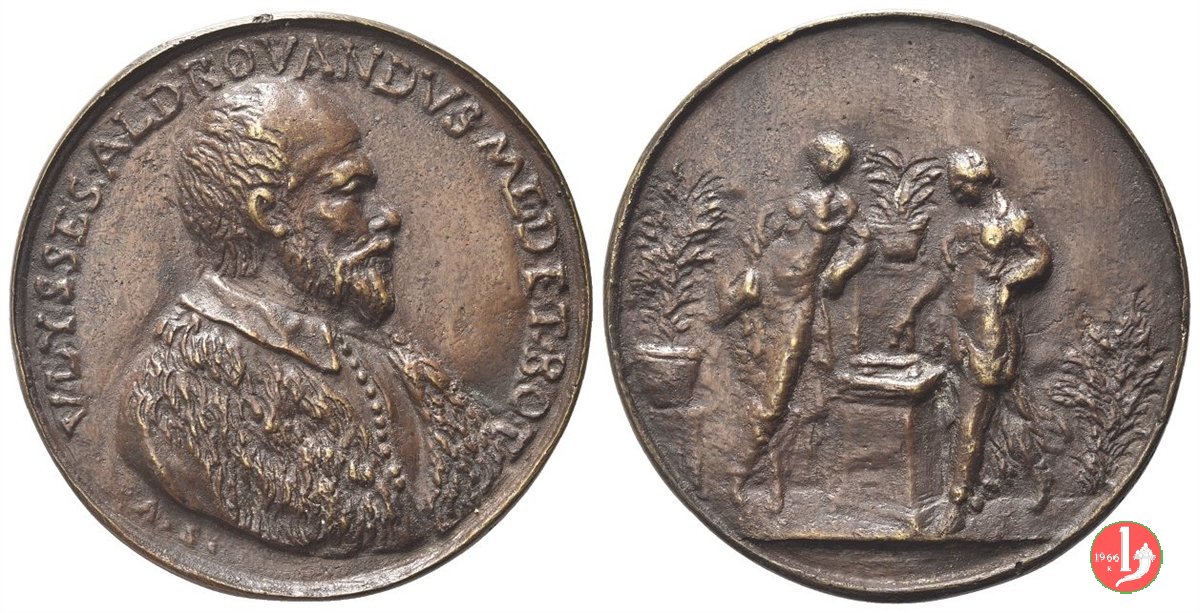 Ulisse Aldrovandi Dritto: VLYSSES ALDOVRANDs • PHI • AC • MED • busto a dx con mantello gallo, volto a sx, regge ramo d'alloro in basso,a dx: •T.R. | |