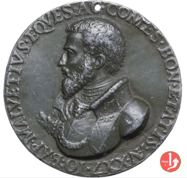 Annibale Bentivoglio 1569 -VT1968 Dritto: ANIBAL • BENTIVOLVS • A • A • XXII 1569 busto corazzato a dx | |