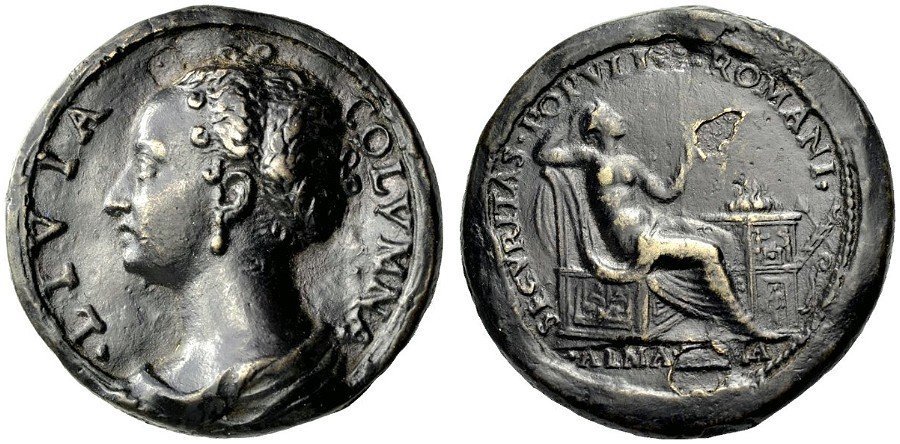 Giulia da Bologna 1555 Dritto: IVLIA • BOLOG • AE • XXVII busto a dx sul taglio del busto: 1555 • P | |