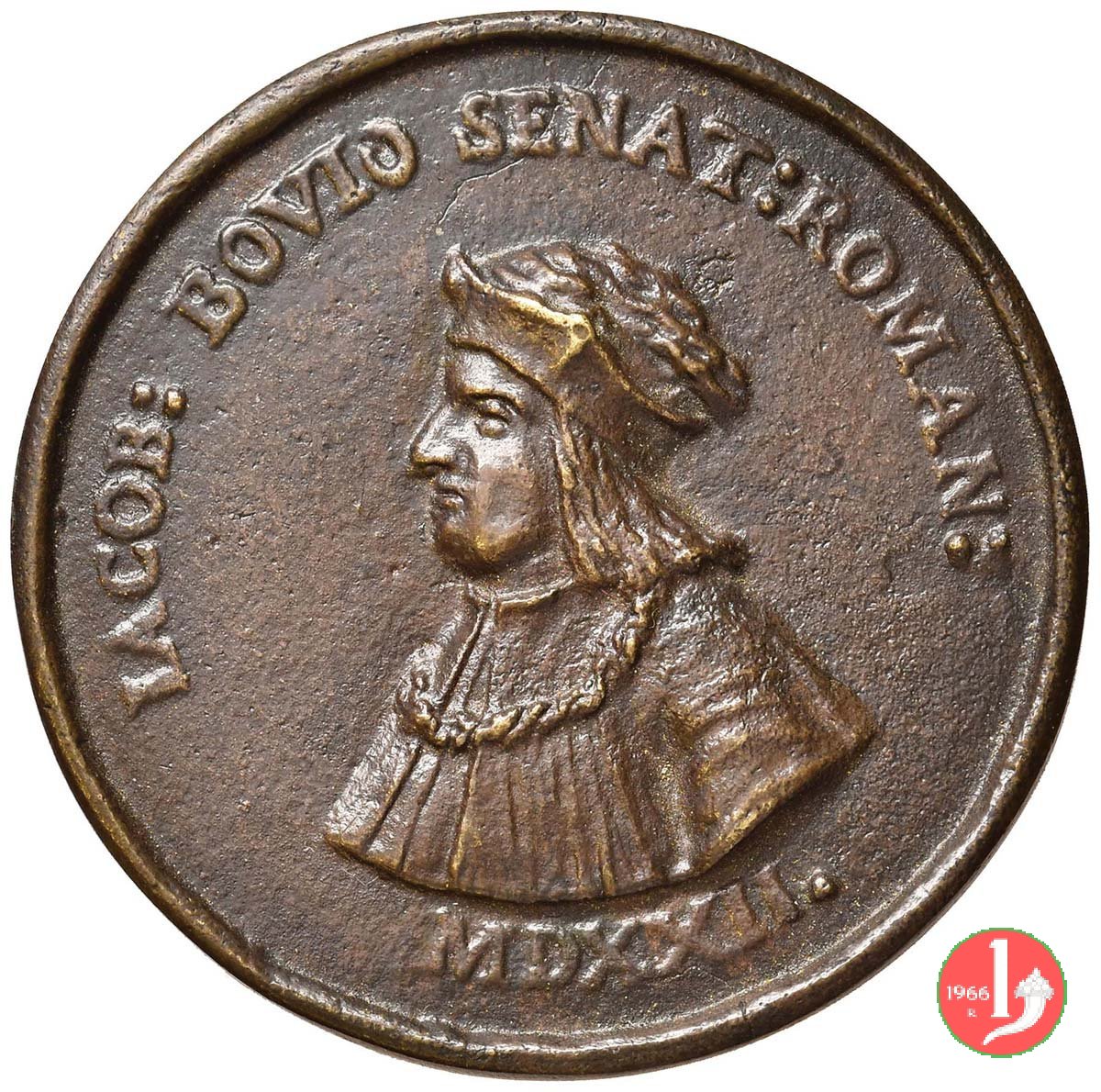 Giacomo Bovi Dritto: IACO busto a sx con berretto e camice con collare sotto al busto inciso (in alcuni esemplari): AN MDXIII | |