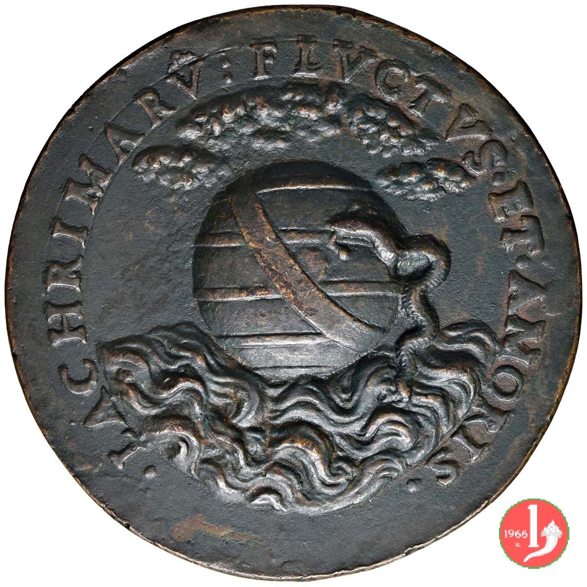 Fabio Mignanelli Dritto: FA busto a dx con piviale e cappello Globo entro mare agitato dal quale, a dx esce serpe; in alto nubi | |