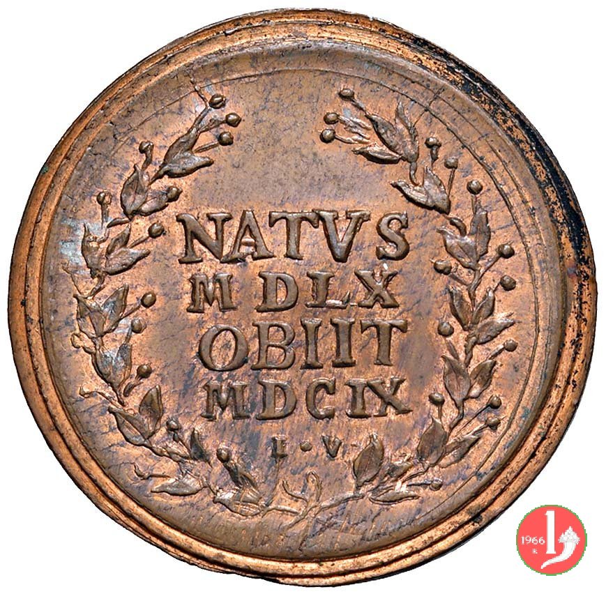 Verso: nel campo, tra rami d'alloro: NATVS = MDXXIII = OBIIT = MDIC