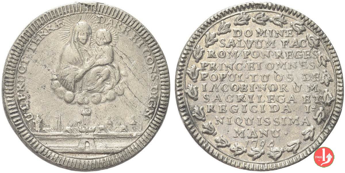 Verso: entro rami d'alloro, legati in basso da nastro: VIRTVTI = LIBVRNI = CIVITAS = 1792