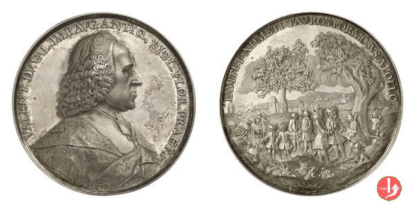 Dritto: VALENTIN. DVVAL. IMP. AVG. ANTIQ. BIBL. FLOR. PRAEF.