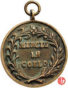 Verso: entro rami d'alloro e palma: MERCES = IN = COELO