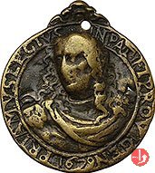 Francesca Miari -V979 Dritto: FRANCISCA EMILIARIA _ 1660 busto Stemma nobiliare Miari | |