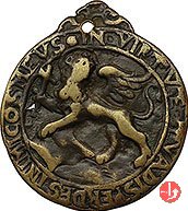 Archivio della Città di Udine -V974 Dritto: VRBIS VTINI TABVLARIVM AERE PVB CONSTRVCTVM * Prospetto del Palazzo Municipale sormontato da Leone di San Marco e tra gli stemmi di Udine e del luogotenente Nicolò Venier | |