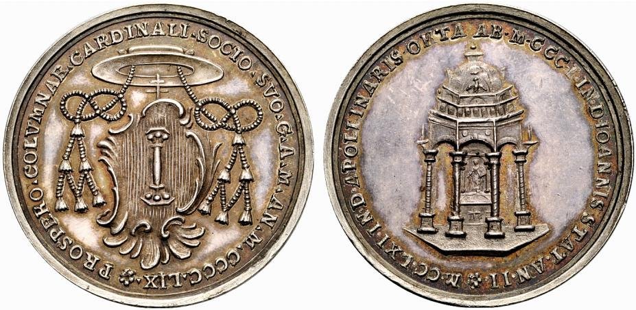 Verso: * PROSPERO • COLVMNAR. CARDINALI. SOCIO. SVO. G. A. M. AN. M.CCCC.LIX •