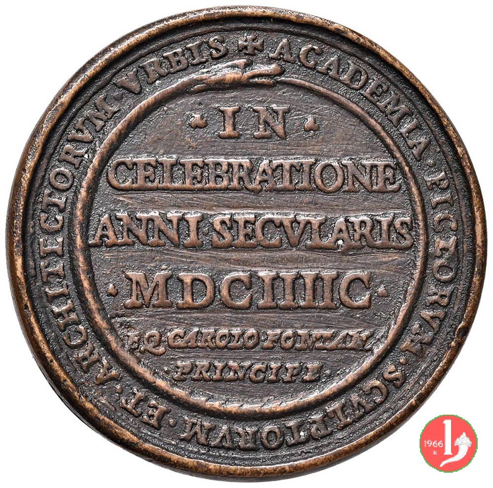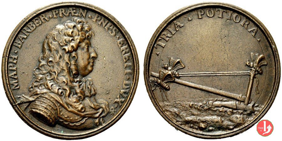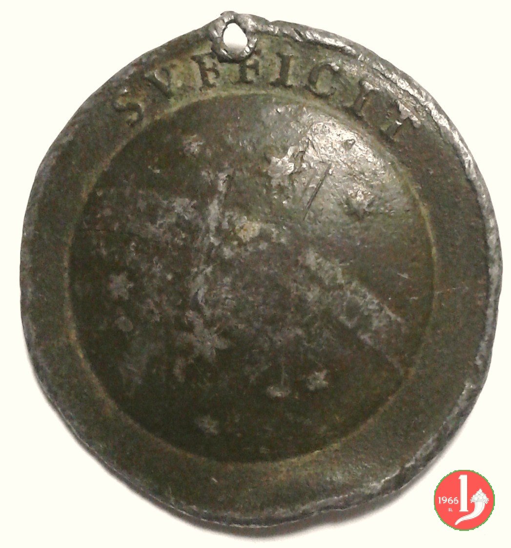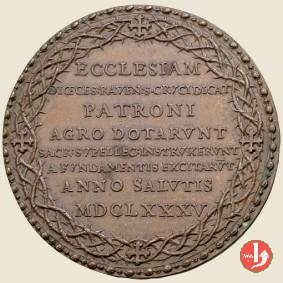Verso: nel campo entro corona di spine fermata ai lati da Croci: ECCLESIAM = DIOECES RAVEN S CRVCIDICAT = PATRONI = AGRO DOTARVNT SACR SVPELLEC INSTRVXERVNT = A FVNDAMENTIS EXCITARVT = ANNO SALVTIS = MDCLXXXV