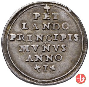 Verso: nel campo, sotto a trifoglio: PET = LANDO = PRINCIPIS = • = MVNVS = ANNO = I (tra trifogli)