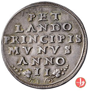 Verso: nel campo: PET = LANDO = PRINCIPIS = MVNVS = ANNO = II (tra figlie di vite)