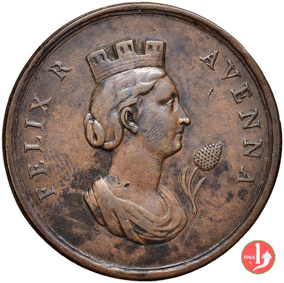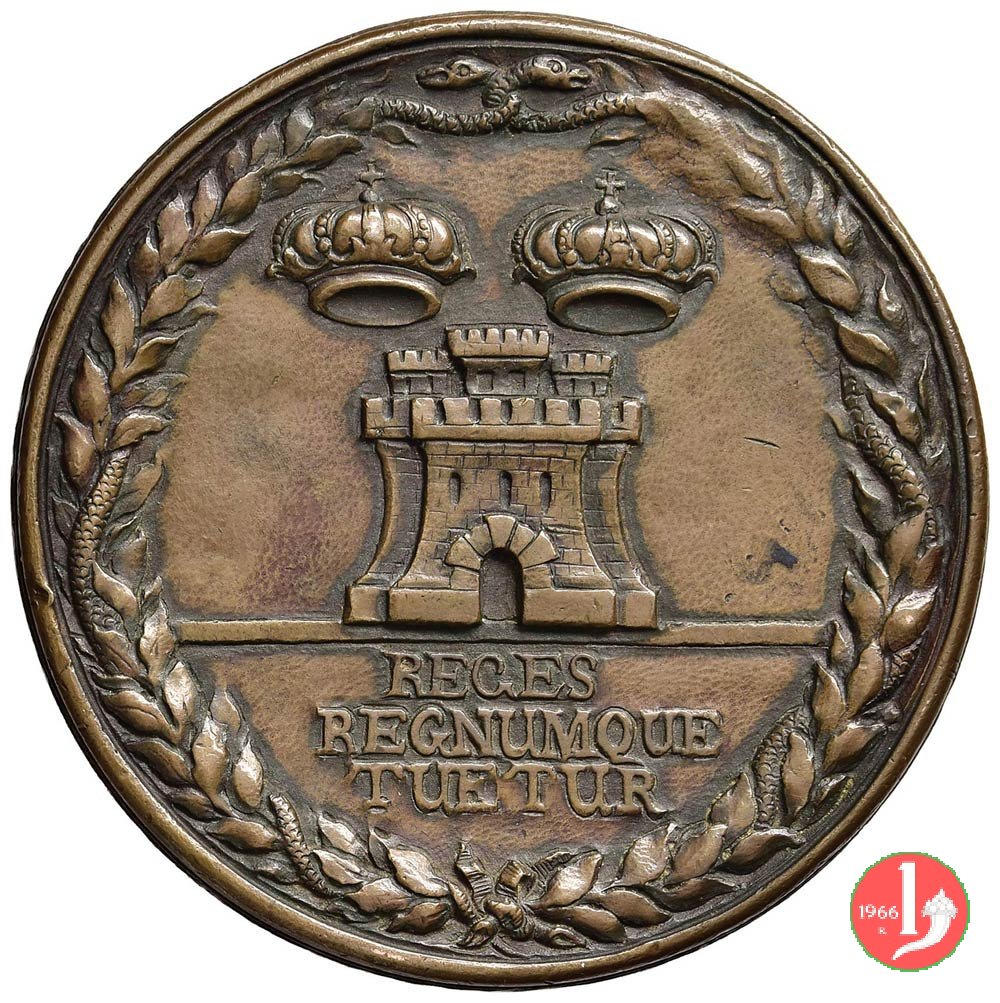 Verso: Torrione sormontato da due corone, tra serti d'alloro legati da serpi
