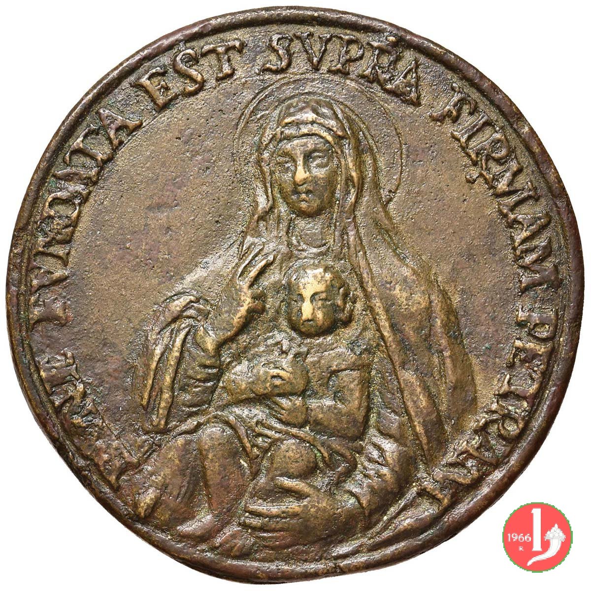 Dritto: ANTON : BARTHOL : DE : BONFILIOLIS * IACOB : OCTAV : NICOL : DE : BECCADELLIS * = PALVT S. R. E. CARD : DEALTERIIS PRAESIDIO * ECCL : PAROCH. MARIMORTAE FVNDATORES *