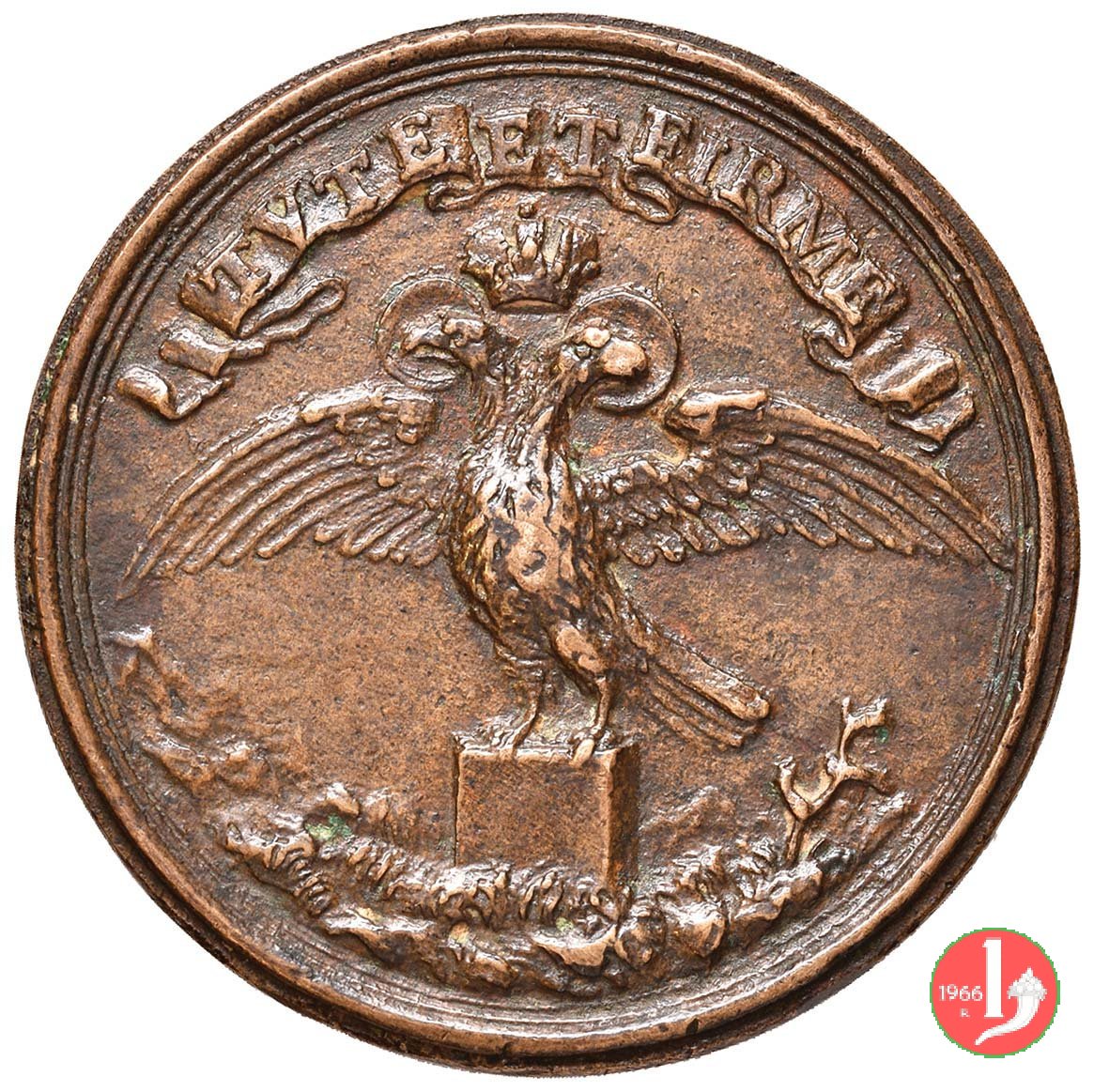 Verso: nel campo: FRANCs = DONATO = PRINCIPIS = MVNVS = ANNO = I (tra trifogli)