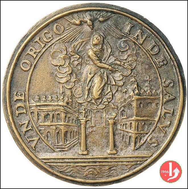 Verso: entro ghirlanda: * = MDCXXXVIII = POST = OBITVM = QVINQVENIO = X IIII X