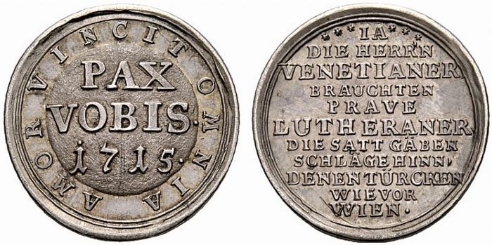 Verso: nel campo: IA = DIE HERRN = VENETIANER = BRAUSHTEN = PRAVE = LUTHERANER = DIE SATT GABEN = SCHLAGE HINN • = DENENTURCKEN = WIEVOR = WIEN •