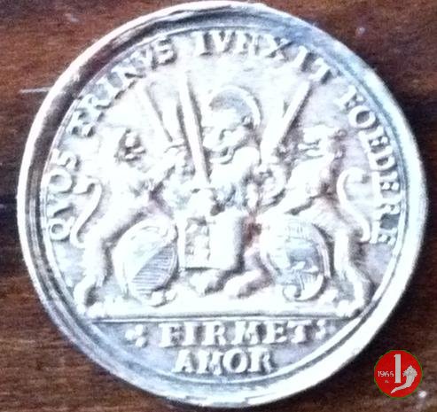 Dritto: circolarmente: OMNIA AMOR LEX ARS MARS MORSQ PECVNIA VINC = PAX = VOBIS = 1716