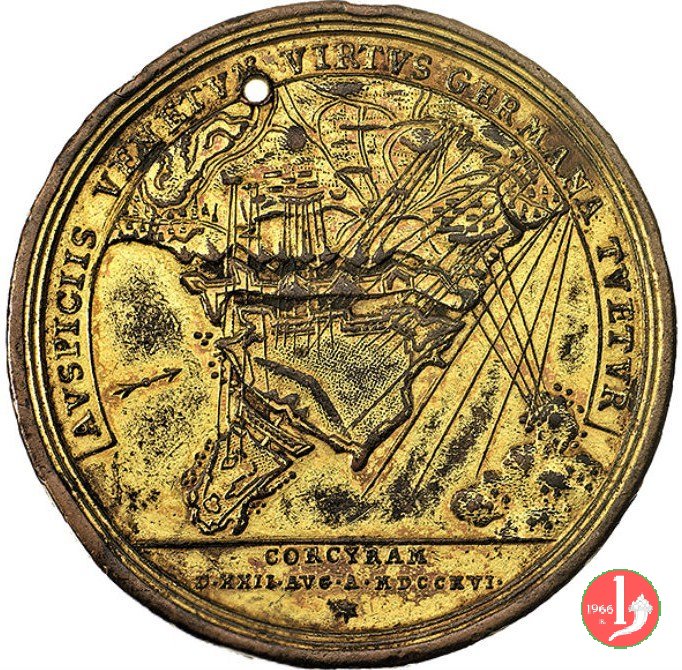 in esergo: CORCYRAM = D • XXII • AVG • A • MDCCXVI • = *