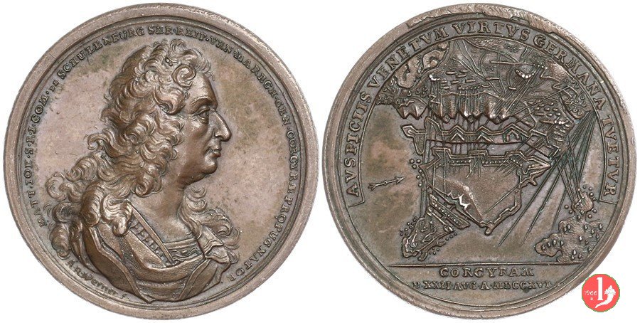 Dritto: MATT • IOH • S • R • I • COM • DE SCHULENBURG SER • REIP • VEN • MARECH • GEN • CORCYRAE PROPUGNATOR •