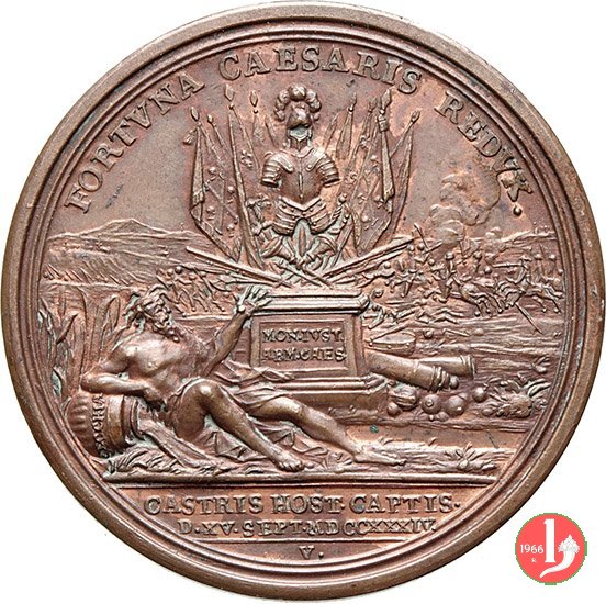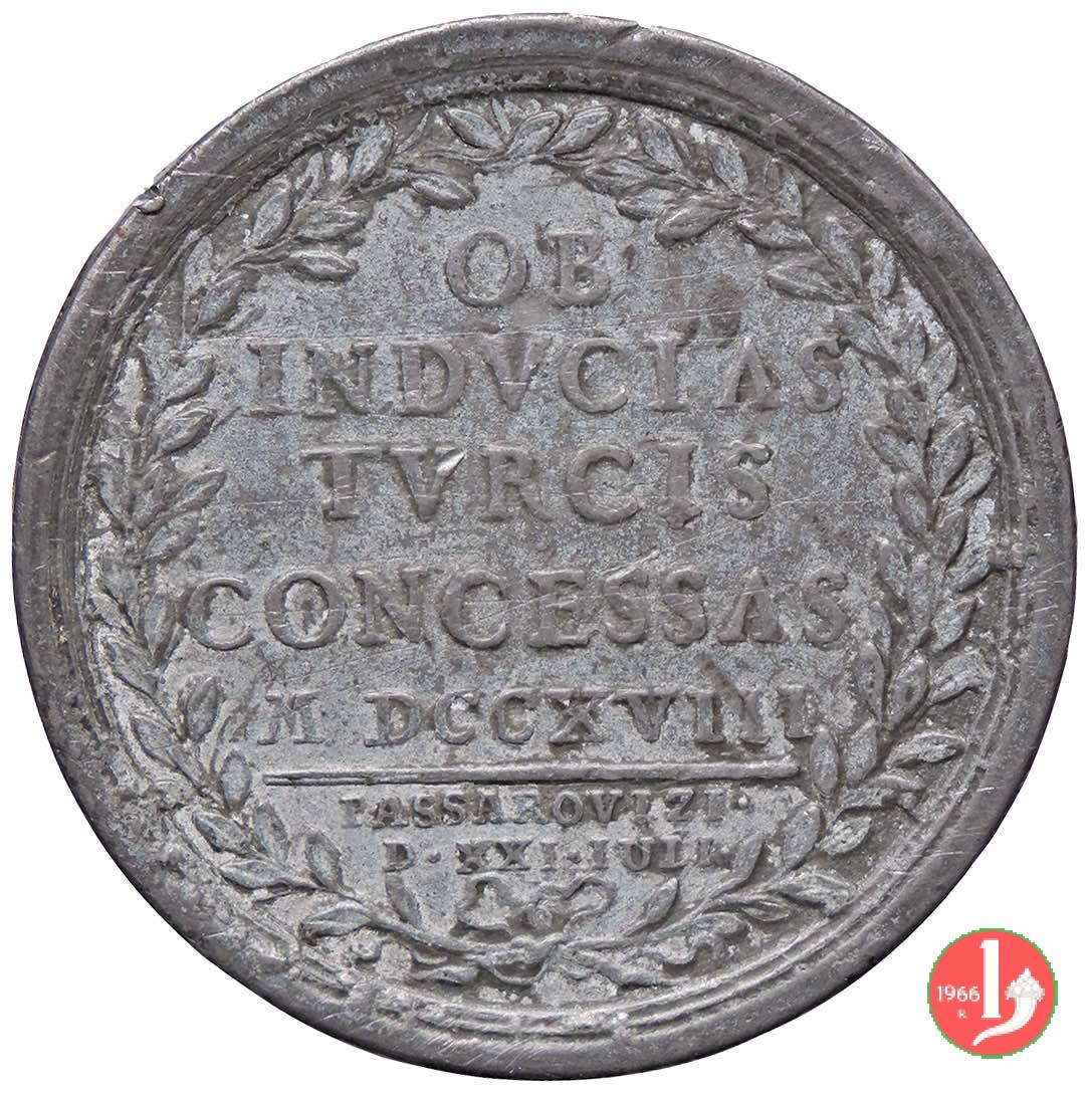 Verso: nel campo, tra rami d'alloro legati in basso da nastro: OB = INDVCIAS = TVRCIS = CONCESSAS = MDCCXVIII = - = PASSAROVIZI = D • XXI • IVLI •