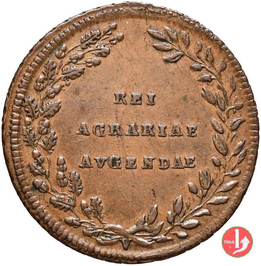Verso: tra rami di quercia e d'alloro legati in basso da nastro incrociato: REI = AGRARIAE = AVGENDIAE