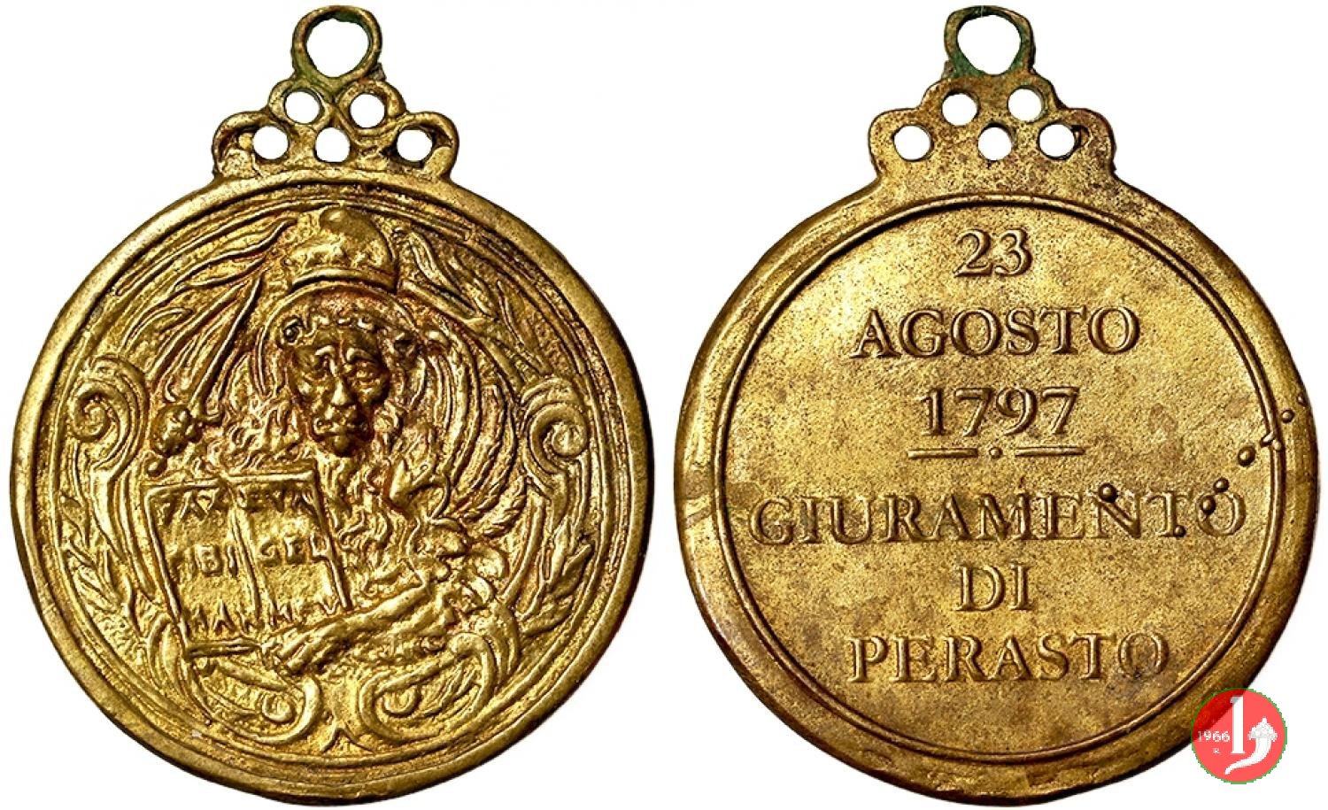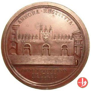 Reverse: entro ghirlanda di calici floreali: URBIS = SERVATORIB = BENEMAERENS = PATRIA = AD LITUS = EXPLOSIONE = REPARATA = 1797