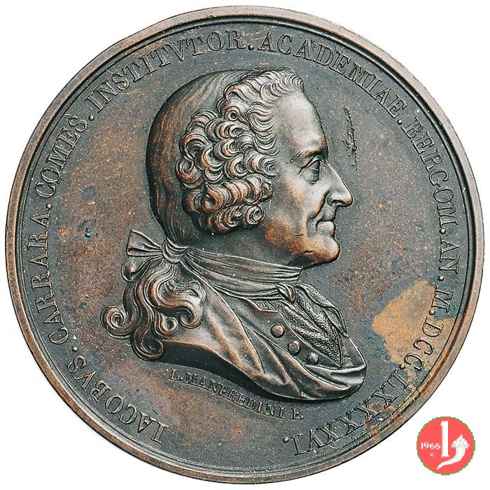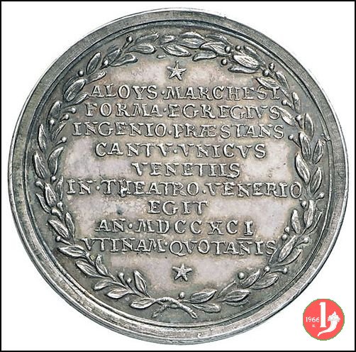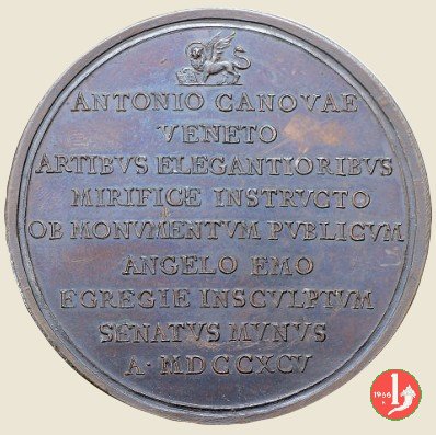 Reverse: nel campo: ANTONIO ZATTAE = SVMMAE INDVSTRIAE = TYPOGRAPHO = PERQVISITIS EIVS OPERA =PRIVILEGIIS TYPOGRAPHICIS = ATQVE ORDINE DIGESTIS = TRIVMVIRI REI LITTERARIAE = MODERATORES = ANNO MDCCXC
