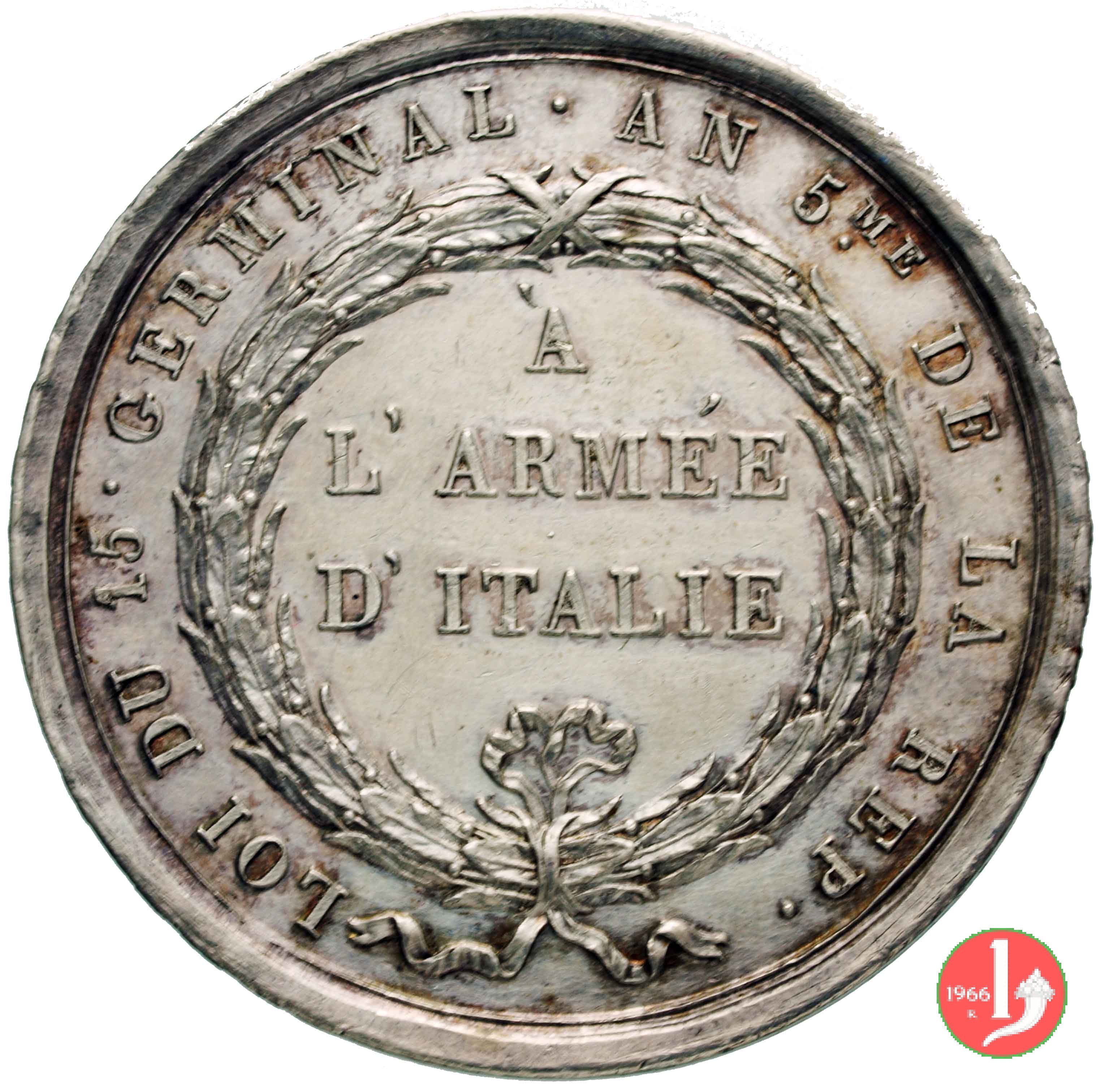sotto: A L'ARMEE D'ITALIE = VICTORIEUSE = fascio di fulmini = LOI = DU 24 PLUVIOSE = AN 5ME R.