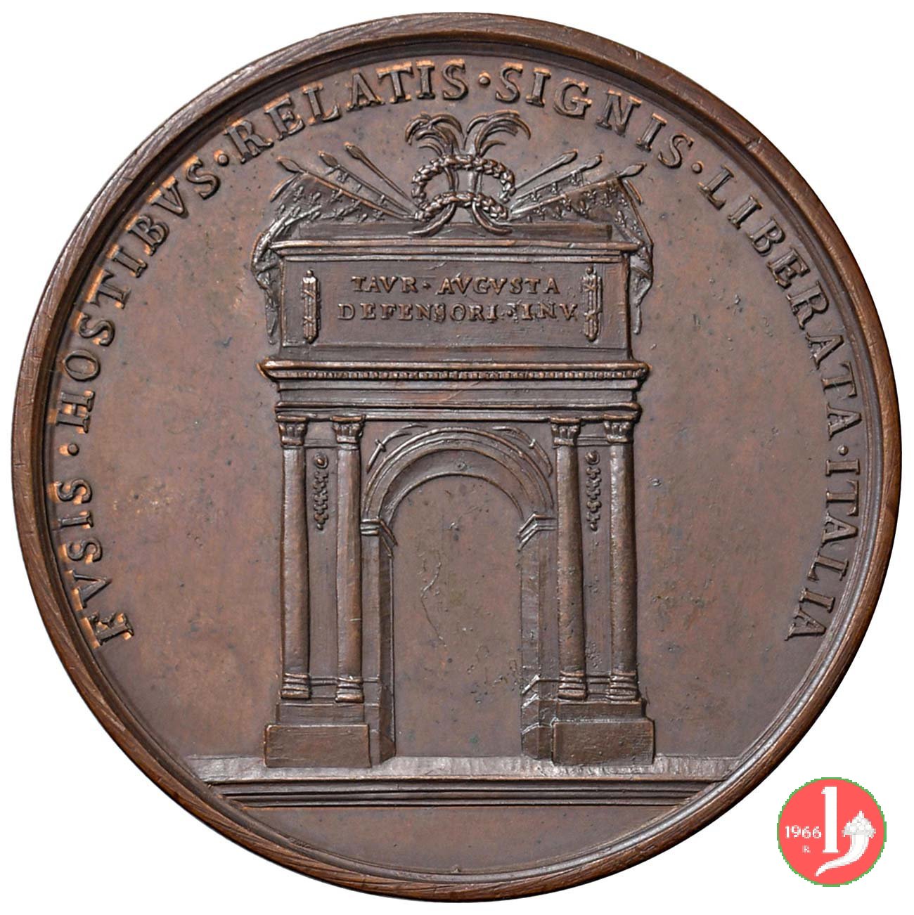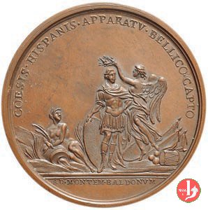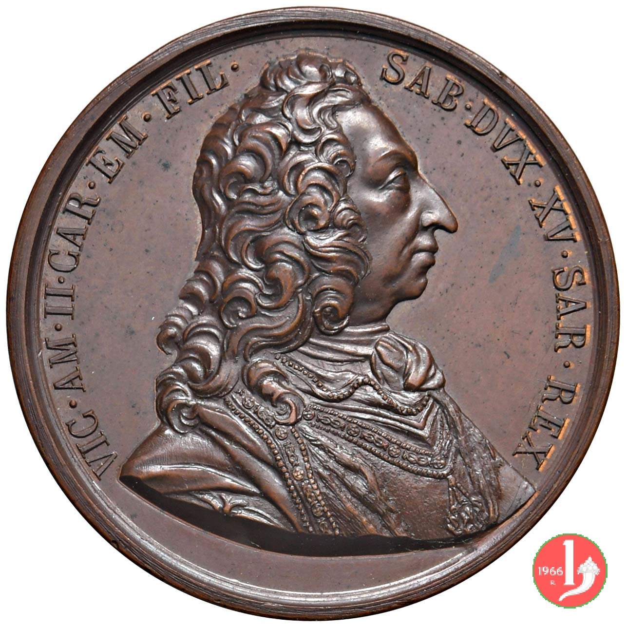 Vittorio Amedeo II 1675-1730 -UdS74a Dritto: VIC • AM • II • CAR • EM • FIL • _ SAB • DVX • XV • SAR • REX busto corazzato e paludato a dx con collare della SS. Annunziata Arco trionfale | |