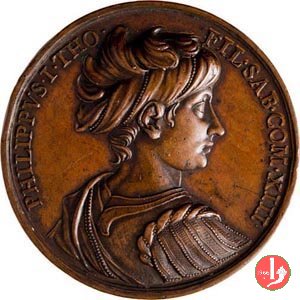 Violante Ludovica -UdS60 Dritto: IOLANTA • CAROLI • I • SAB • D • FIL • PHILIB • II • VXOR • I busto coronato a sx con cuffia gemmata e velo sul taglio spalla: LAVY | |