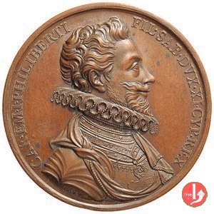 Carlo Emanuele I 1580-1630 -UdS66 Dritto: CAR • EM • PHILIBERTI _ FIL • SAB • DVX • XI • CYP • REX busto corazzato a dx con collare alla spagnola sul taglio spalla: LAVY armi deposte ai piedi di monte con fortezza | |