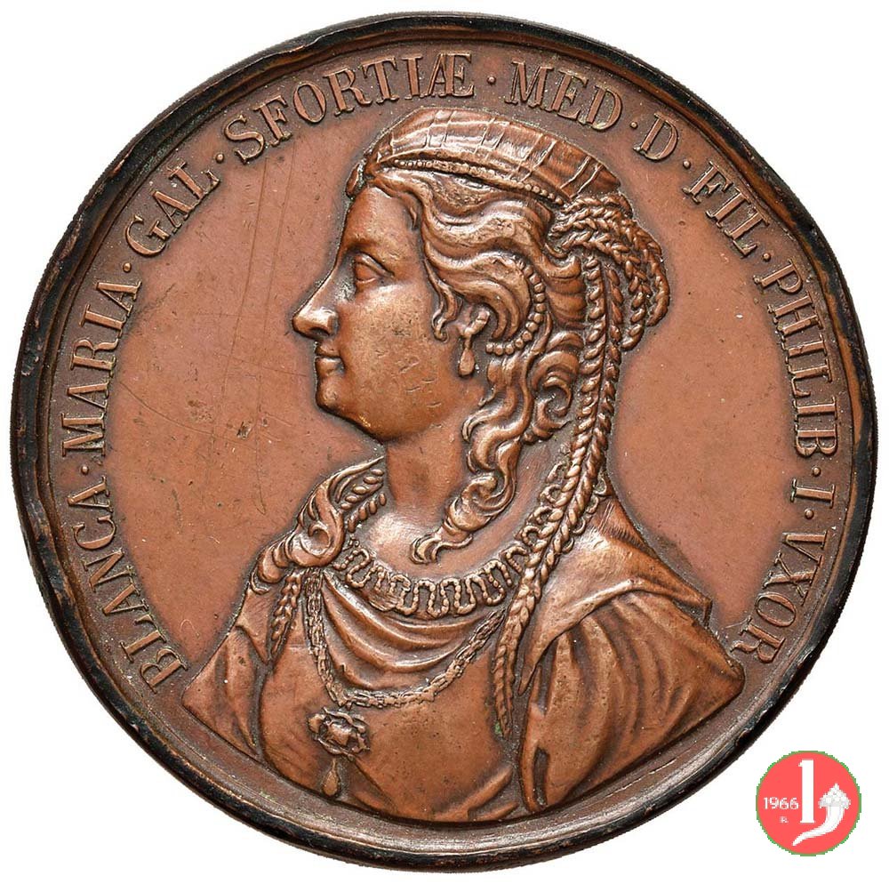 Bianca Maria Sforza -UdS52 Dritto: BIANCA • MARIA • GAL • SFORTIAE AE • MED • D • FIL • PHILIB • I • VXOR busto a sx con berretto Aquila bicipite coronata su globo in esergo: MAXIMILIANI • GONIVX | |