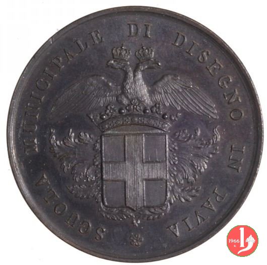 Scuola Municipale di Disegno Pavia Dritto: SCUOLA MUNICIPALE DI DISEGNO IN PAVIA * Stemma coronato sormontato da aquila bicipite | |