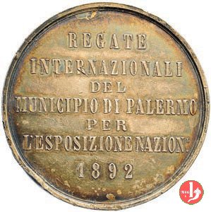 Esposizione Nazionale 1891-92 Dritto: ESPOSIZIONE * NAZIONALE vista della sede Espositiva nel campo, a sx, presso il bordo interno: NATOLI in esergo: 1891-92 sotto: fregio d'alloro Vista, di 3/4 a dx, del monumento ai "fratelli Kanaris" sulla base: CORONA REGIS = ET REGNI CAPUT | |