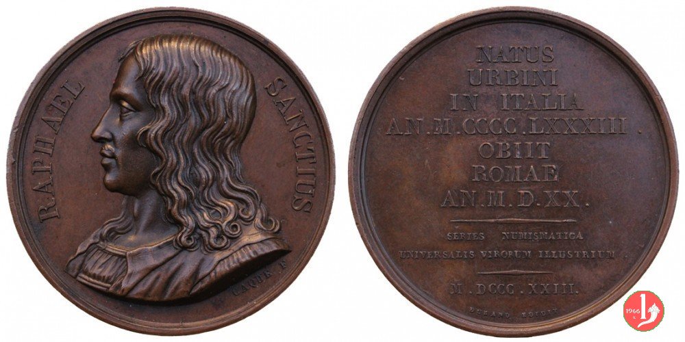 U.I. - Raffaello Sanzio 1823 Dritto: RAPHAEL _ SANCTUS busto a sx con camicia e mantello sotto: CAQUE' F. in basso, circolarmente: DURAND EDIDIT | |