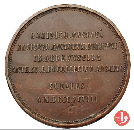 Messina - Francesco Durante 1898 Dritto: CHIRURGIAE ROMAE INSTAURAVIT busto a sx con giacca e gilet sotto: A. SIRLETTI nel campo: QUINQUEVICENNALIA = FELICITER ALUMNI = MDCCCXCVIII. | |