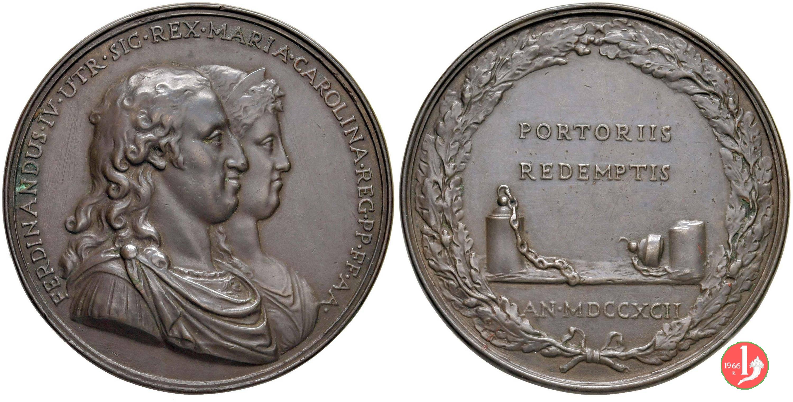 Dritto: FERDINANDVS • IV • UTR • SIC • REX • MARIA • CAROLINA • REG • PP • FF • AA •