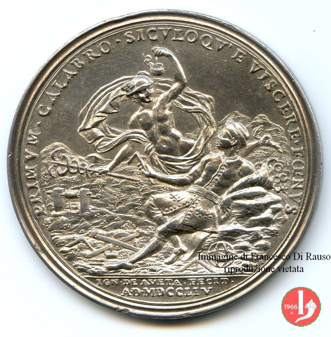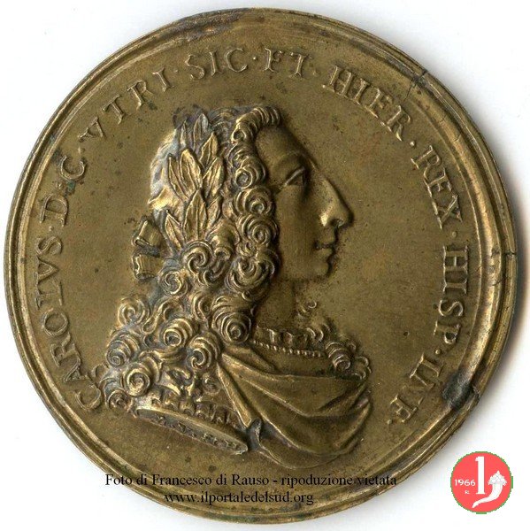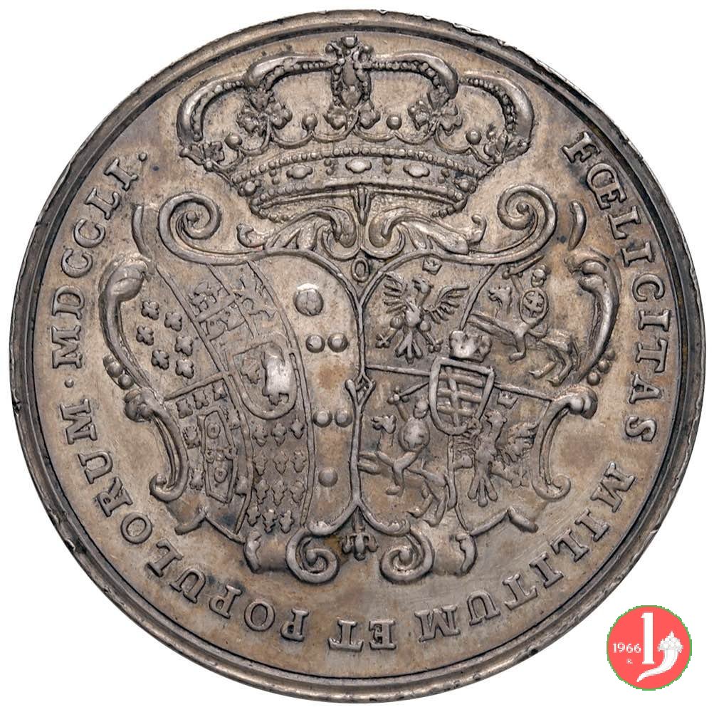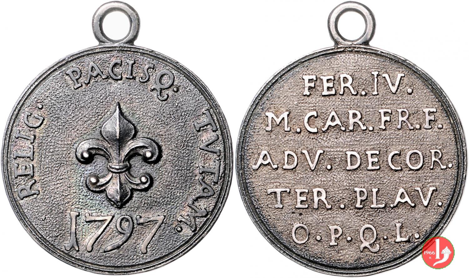 Verso: nel campo: FER. IV. = M. CAR. FR. F. = ADV. DECOR. = TER. PLAV. = O. P. Q. L.