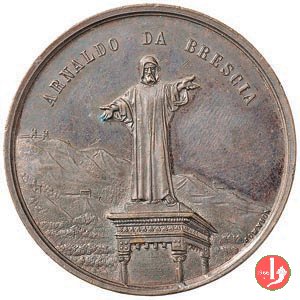 Monumento ad Arnaldo da Brescia 1882 Obverse: ARNALDO DA BRESCIA vista del Monumento al Frate in basso, a dx: JOHNSON | |