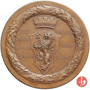 50° delle Dieci Giornate 1899 Obverse: combattimento presso Porta Torrelunga (Porta Venezia) in basso, a dx: A.C. nel campo, ai sx: 50° = ANNIV. = DELLE X = GIORNATE nel campo, a dx: BRESCIA = 1849 = 1899 in basso, presso l'orlo: JOHNSON | |