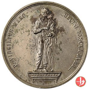 XIX Centenario Virgilio 1870 Obverse: P. VIRGILIVS MARO _ •..CECINI, PASCVA, RVRA... La Statua di Virgilio laureato, regge libro su base in basso a sx: C. CALVI F. | |