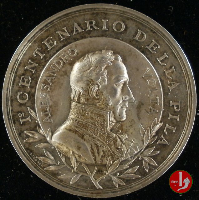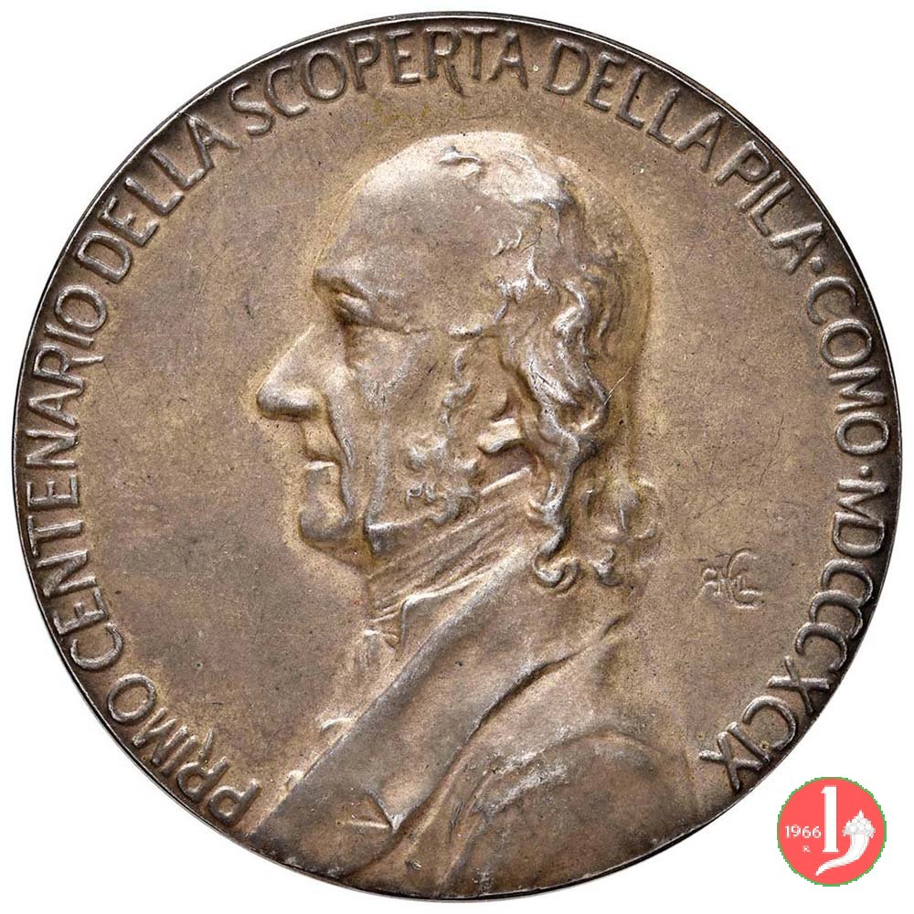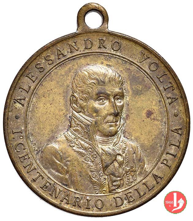 Alessandro Volta - 100° della pila 1899 Obverse: ALESSANDRO VOLTA _ I° CENTENARIO DELLA PILA = * COMO 1899 * busto a dx con giubba e bavero | |